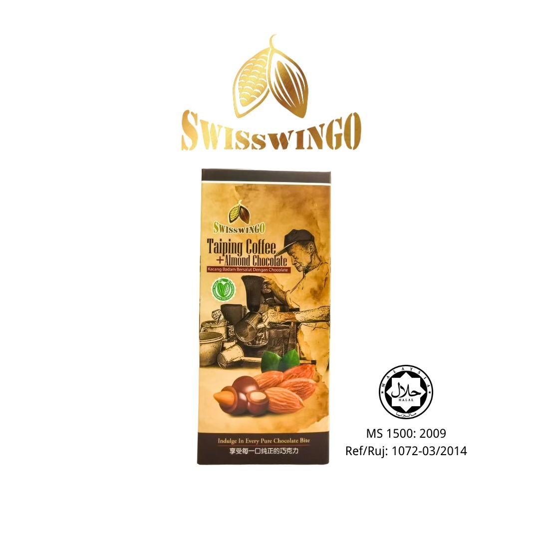 Taiping Coffee Almond Chocolate-Offers a luxurious fusion of rich Arabica coffee, smooth milk chocolate, and crunchy almonds, delivering a bold yet sweet flavor in every bite. With just 31.9kcal per serving, it’s a guilt-free indulgence crafted from premium ingredients like creamy cocoa butter and full cream milk powder. Perfectly portioned for snacking, this treat is ideal for both gifting and personal enjoyment. Experience the irresistible blend of coffee and chocolate today!